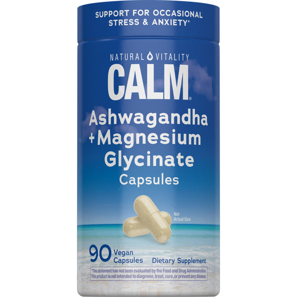 Stress ist unvermeidlich, aber es muss keine Belastung sein. Gelegentlicher Stress kann ausgeglichen und gewandelt werden, wenn du etwas RUHE in deinen Tag einlädst.* Natural Vitality CALM® Ashwagandha + Magnesiumglycinat ist auf Komfort ausgelegt und so formuliert, dass es ein wirklich RUHIGES Erlebnis bietet, mit Unterstützung bei gelegentlichem Stress und Angst.*