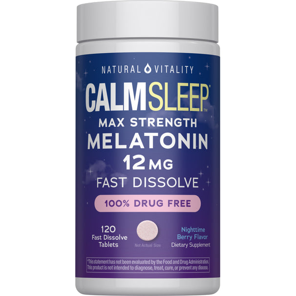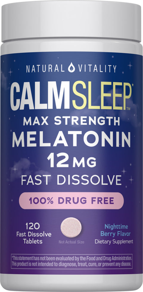 CALM Schlaf Melatonin 12 mg Maximalstärke Nacht Beerenaroma, 120 schnell lösliche Tabletten