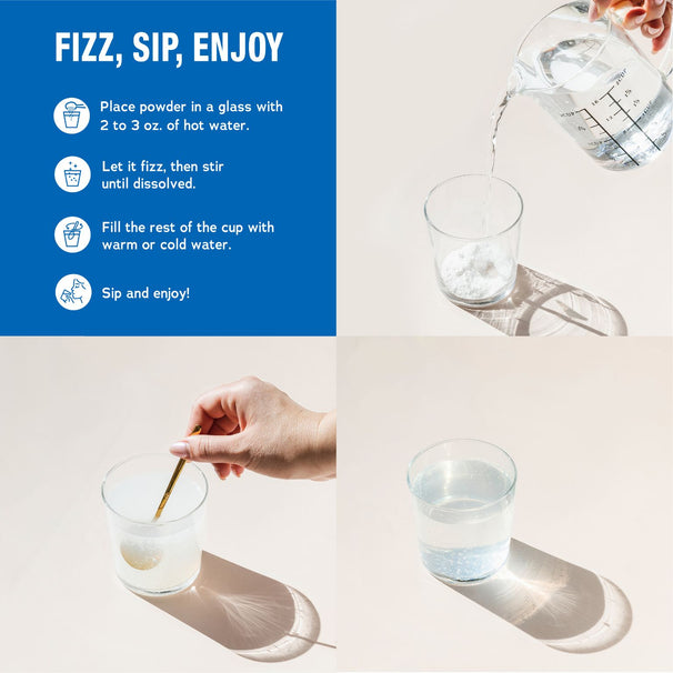 • Step 2: Let it fizz, then stir until dissolved and clear.