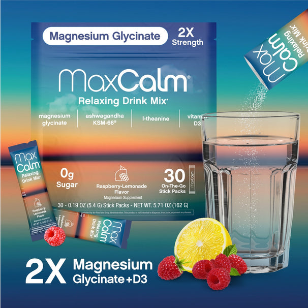 MaxCalm® Relaxing Drink Mix* Magnesium Glycinate Raspberry-Lemonade, 30 Stick Packs