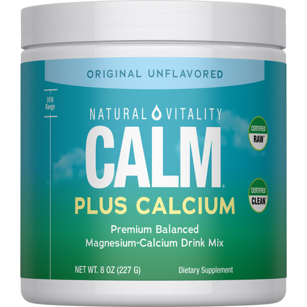 Natural Vitality CALM® Plus Calcium Unflavored Powder es tu mezcla premium de bebida de Magnesio-Calcio equilibrada que ayuda a reponer los niveles diarios de magnesio, con soporte adicional de vitaminas y minerales que proporciona un apoyo de acción rápida para que sientas el poder de CALM.* Una vez combinado con agua tibia, CALM burbujea y se transforma en Citrato de Magnesio Iónico, altamente absorbible.†△ Esta reconfortante taza de Natural Vitality CALM® es tan divertida de preparar como de disfrutar.*