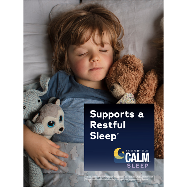 Durante más de 40 años, Natural Vitality CALM® ha sido una referencia para las familias que buscan los beneficios del magnesio. Ahora, nuestras Kids Sleep Gummies facilitan la incorporación de un poco de CALM a su rutina nocturna.* Ya sea en casa o de viaje, Natural Vitality CALM® Kids Sleep Gummies ofrecen una deliciosa manera de brindar apoyo ocasional para el sueño de tu hijo.*
