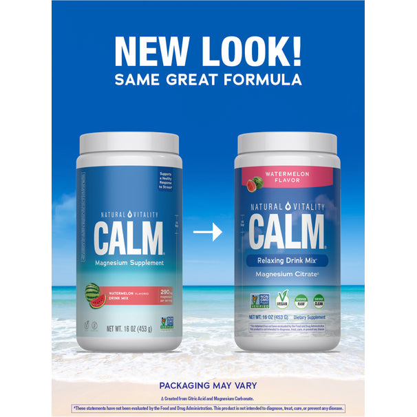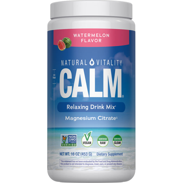 Depuis plus de 40 ans, Natural Vitality CALM® est la référence pour ceux qui cherchent à soutenir la relaxation et le bien-être avec le citrate de magnésium ionique hydrosoluble.* En tant que marque de poudre de magnésium n°1,** il aide les adultes à ajouter facilement une dose de CALM à leur journée.* Découvrez le pouvoir apaisant du magnésium avec le mélange à boire saveur pastèque CALM.*