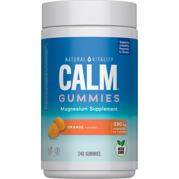 CALM Gummies deliver essential magnesium citrate in a fun, flavorful, and convenient way, with a juicy orange flavor. Whether you’re at home or on the go, Natural Vitality CALM® Gummies can help you replenish your magnesium levels and add some calm into your day.* Each gummy is vegan and free of gluten, synthetic color, and artificial sweetener.