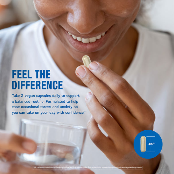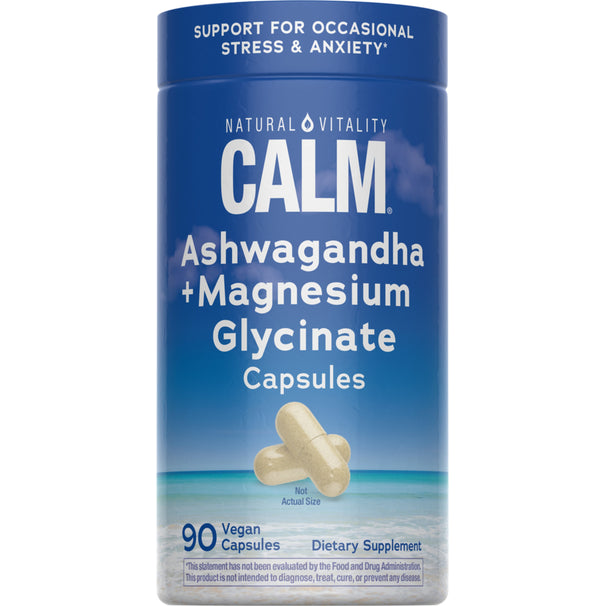 For over 40 years, Natural Vitality CALM® has been the trusted choice for those seeking relaxation and balance.* Our legacy of delivering quality magnesium supplements continues with these convenient CALM Magnesium Glycinate + Sensoril® Ashwagandha capsules. Thoughtfully formulated to support balance and help ease occasional stress and anxiety, they make it easy to find your calm, anytime and anywhere.* Because feeling your best starts with finding balance, inside and out.*