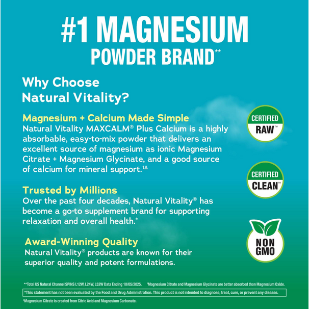 Since 1982, Natural Vitality® has been a trusted leader in magnesium supplementation, and Natural Vitality CALM® is the #1 Magnesium Powder Brand.** Discover the soothing power of magnesium and calcium, in one delicious CALM drink mix.*