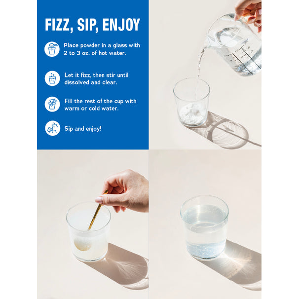 FOR FASTEST PREPARATION: Place powder in a glass or mug; add approximately 2-3 oz of hot water. Let it fizz, then stir until dissolved. Fill with warm or cold water and enjoy. You can also simply add Natural Vitality CALM® to a glass or bottle of cold water.