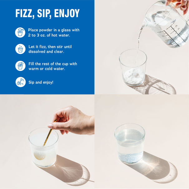 This fizzy drink mix delivers fast-acting support to help you feel the power of CALM and work it into your day.* Once combined with warm water, this drink mix fizzes and bubbles to life, transforming the citric acid, magnesium carbonate, and water into a highly absorbable Ionic Magnesium Citrate.† This soothing cup of CALM is as much fun to make as it is to sip.*