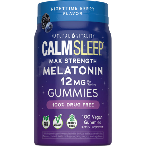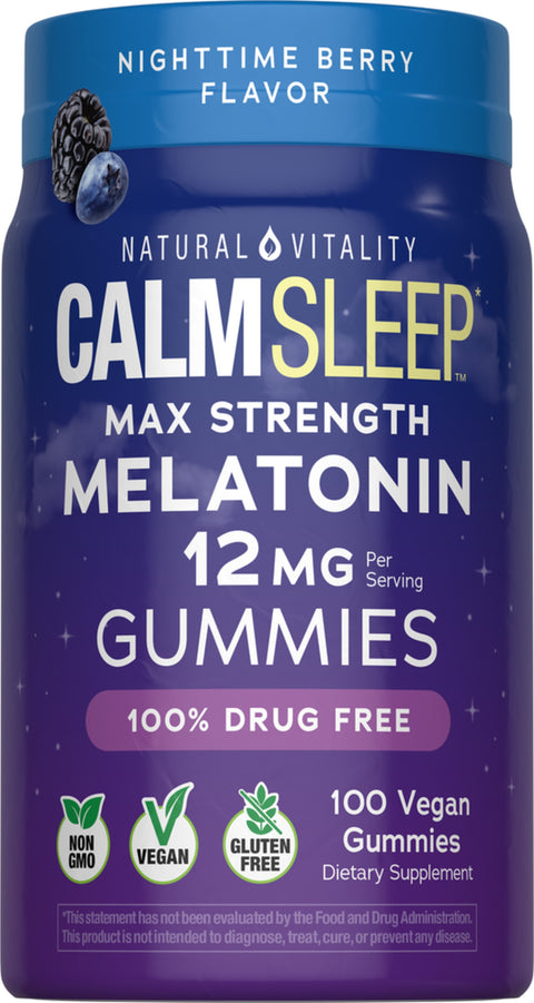 CALM Sleep Melatonin 12 mg Nighttime Berry Flavor, 100 Tasty Vegan Gummies