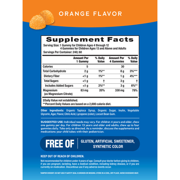 Citrato de magnésio é uma forma de magnésio conhecida por ser facilmente absorvida pelo corpo.† É comumente usado em suplementos para crianças e adultos para ajudar a manter uma ingestão saudável de magnésio como parte de uma dieta equilibrada.