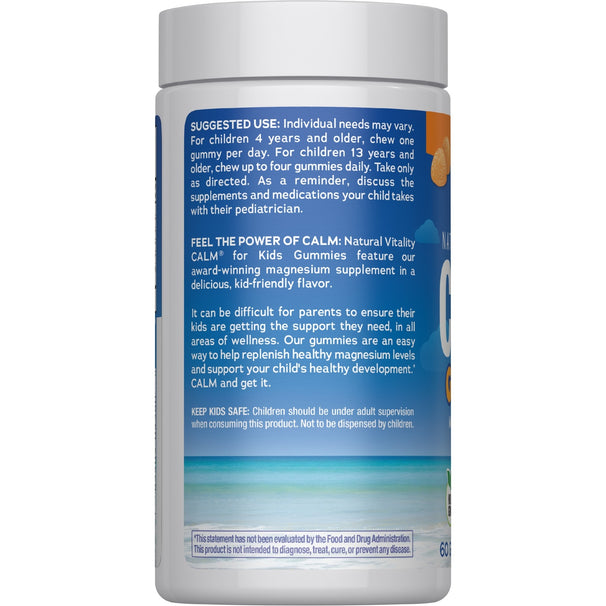 As crianças adoram o CALM, assim como os adultos. As gomas Natural Vitality CALM® Kids oferecem uma maneira simples e deliciosa de apoiar o CALM do seu filho com citrato de magnésio.* Cada porção de goma com sabor doce de frutas cítricas é feita especialmente para crianças e ajuda a repor os níveis de magnésio para apoiar o bem-estar delas.*